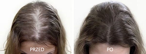 Znacznie zwiększa się objętość i ilość włosów. Łupież całkowicie znika. Wypadanie włosów jest redukowane do minimalnej dopuszczalnej normy.